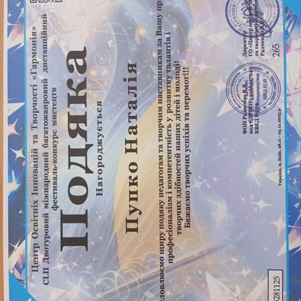 Блог керівника музичного ЗДО № 1 "Дзвіночок" міста Сарни Наталії Пупко