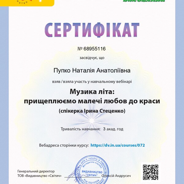 Блог керівника музичного ЗДО № 1 "Дзвіночок" міста Сарни Наталії Пупко